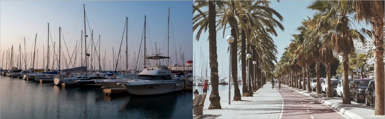 El Pantalán del Mediterráneo se encuentra en una zona privilegiada del Paseo Marítimo de Palma. Con zonas ajardinadas y carriles para peatones y bicicletas configura un ambiente tranquilo y natural.